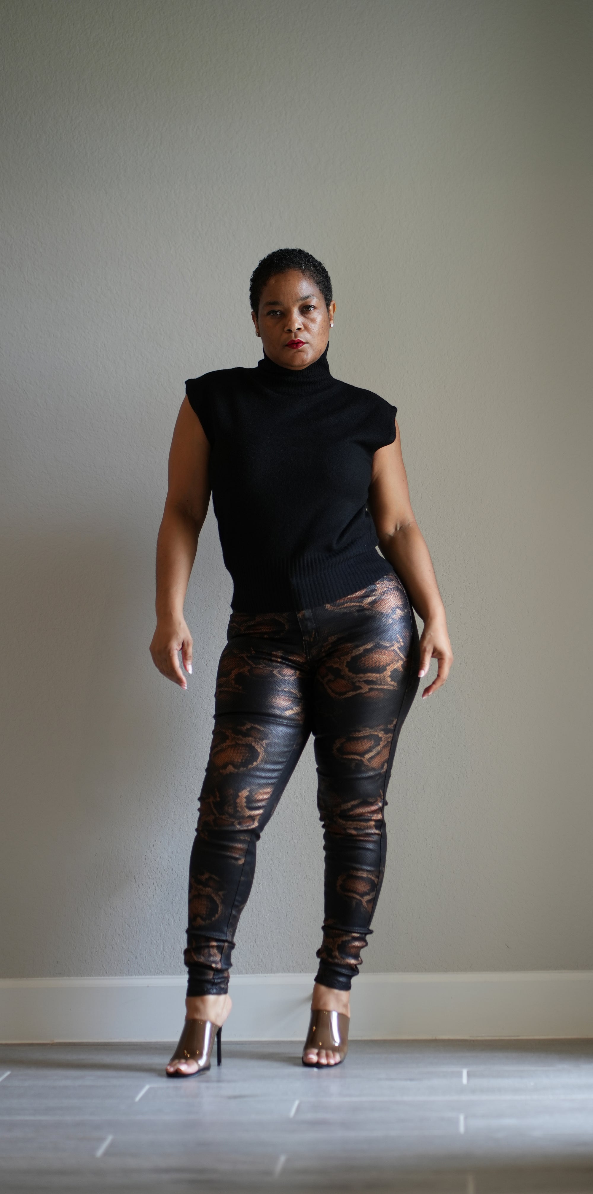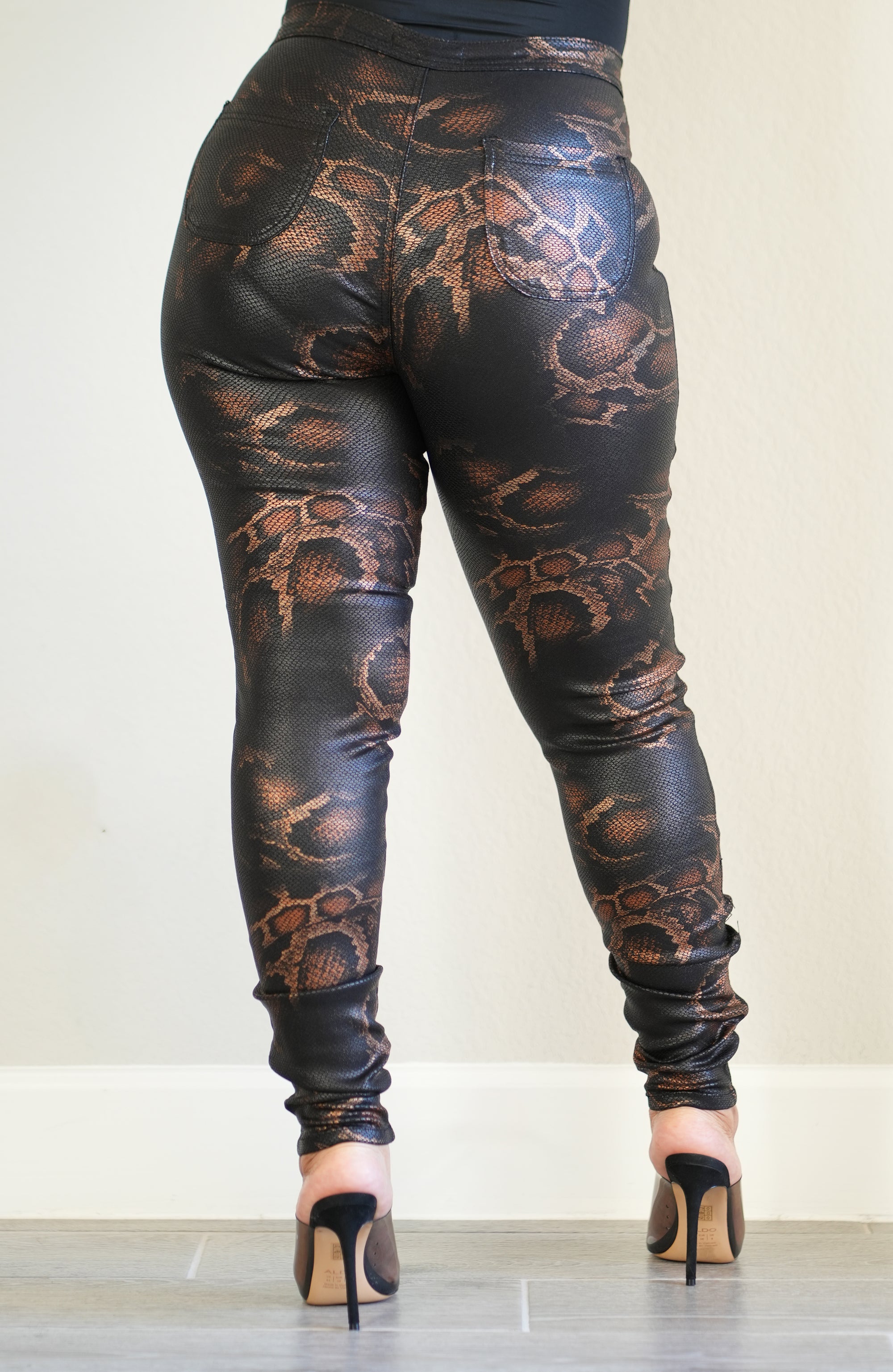 Black Snake Print Coated Pants