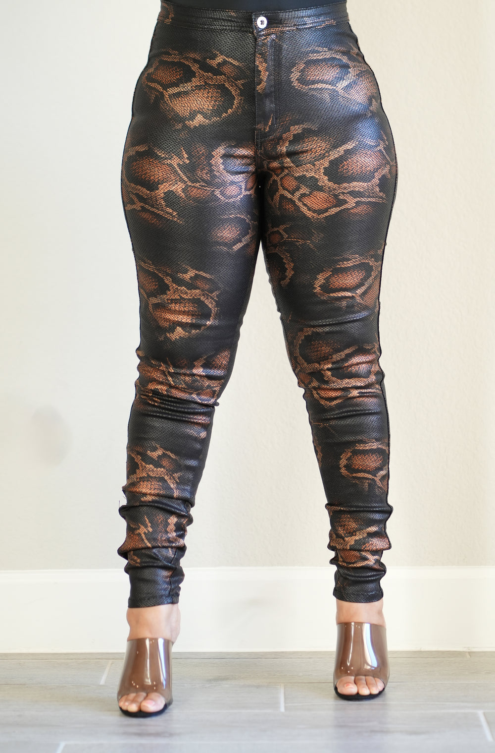 Snake-Embossed Coated Pants